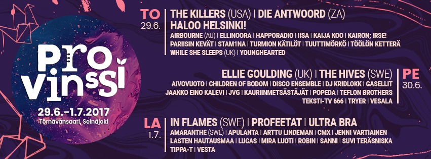 In Flames (SWE), Danzig (USA) Profeetat, Ultra Bra, Amaranthe (SWE), Apulanta, Arttu Lindeman, CMX, Huora, Iron Country Sisters, Jenni Vartiainen, Lasten Hautausmaa, Louis Berry (UK), Lucas, Mira Luoti, Moonsorrow, Robin, Sanni, Suvi Teräsniska, Tippa-T, Vesta, You Me At Six (UK), Äpärät
