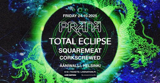 Huomio! Psykedeelisen Goa trancen pioneerit Prana ja Total Eclipse esiintyvät Helsingin Ääniwallissa perjantaina 24. lokakuuta. Lippuja on vielä saatavilla.