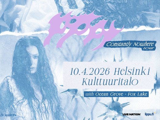 Popin, metallin, elektronisen soundin ja performanssitaiteen ainutlaatuisella tavalla yhdistävä Poppy nähdään "Constantly Nowhere" -kiertueellaan Helsingin Kulttuuritalolla perjantaina 10.4.2026. Illan avaavat australialainen Ocean Grove ja yhdysvaltalainen Fox Lake.