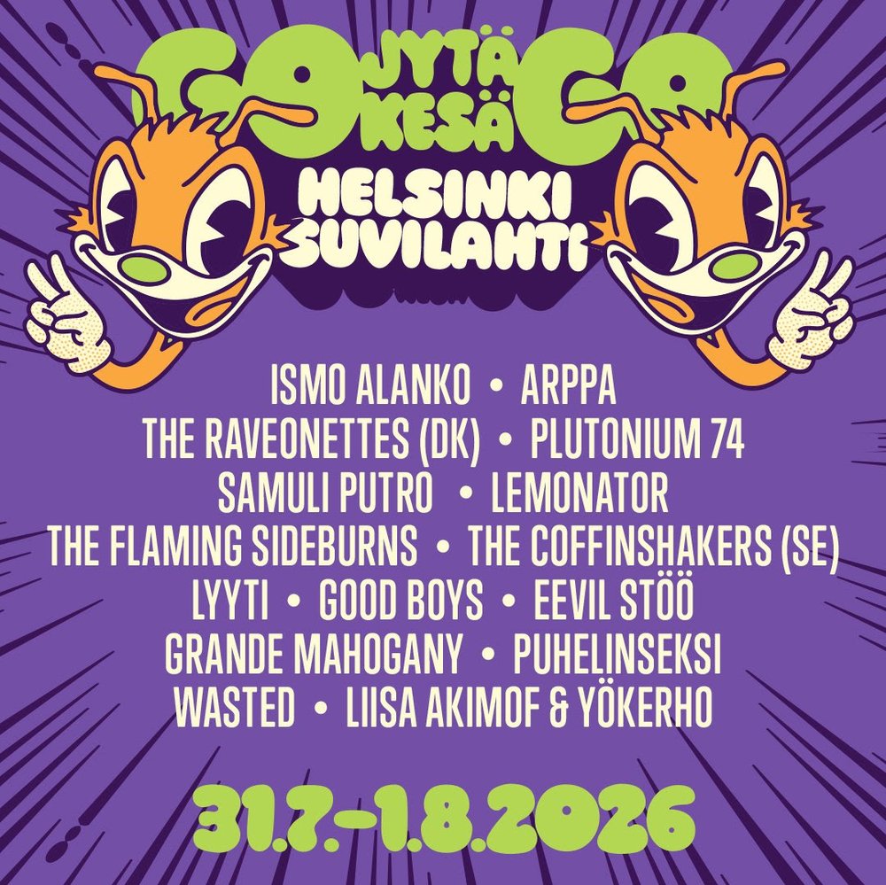 Rock- ja indiemusiikkiin keskittynyt Jytäkesä Go-Go -festivaali järjestetään Helsingin Suvilahdessa 31.7.–1.8.2026.