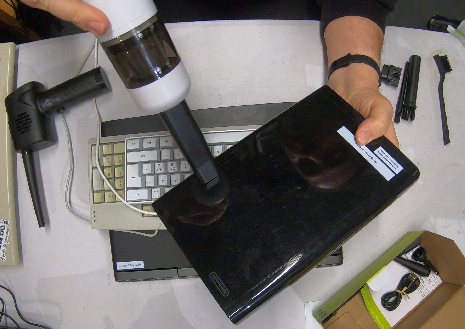 En ole erityisen siivo tai hyperjärjestelmällinen, mutta jonkinlainen yleishygienia on ihan hyvä asia. Joidenkin laitteiden ja etenkin aktiivikäytössä olevien näppäimistöjen kanssa se voi kuitenkin olla haastavaa. Niinpä Triosoftista bongaamani akkukäyttöiset mini-siivouskoneet johtivat välittömään ostosmatkaan.