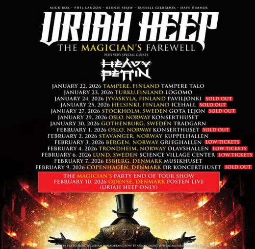 Pitkän linjan rock-instituutio Uriah Heep tekee tammikuussa neljä Suomen keikkaa osana uransa päättävää jäähyväiskiertuetta. The Magician’s Farewell -kiertueen Pohjoismaiden keikat käynnistyvät tänään torstaina Tampere-talon keikalla. Veteraaniorkesteri vierailee myös Turussa, Jyväskylässä ja Helsingissä.