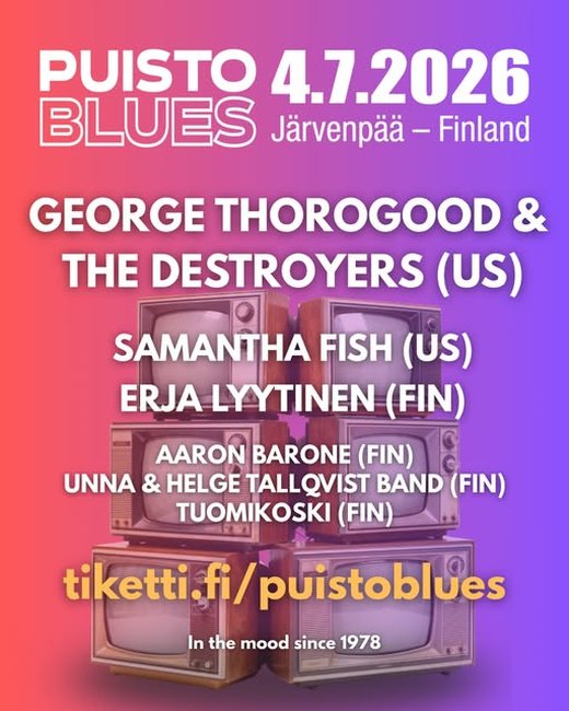Puistobluesin pääkonsertti pidetään lauantaina 4. heinäkuuta Järvenpään Vanhankylänniemessä. Liput myy Tiketti.