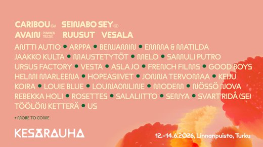 12.-14.6.2026 Turussa nähdään myös: Seinabo Sey (SE), Ruusut, Arppa (8-pack kokoonpanollaan), Jaakko Kulta, French Films, Hopeasiivet, Rebekka Holi, Salaliitto, US ja Töölön Ketterä.