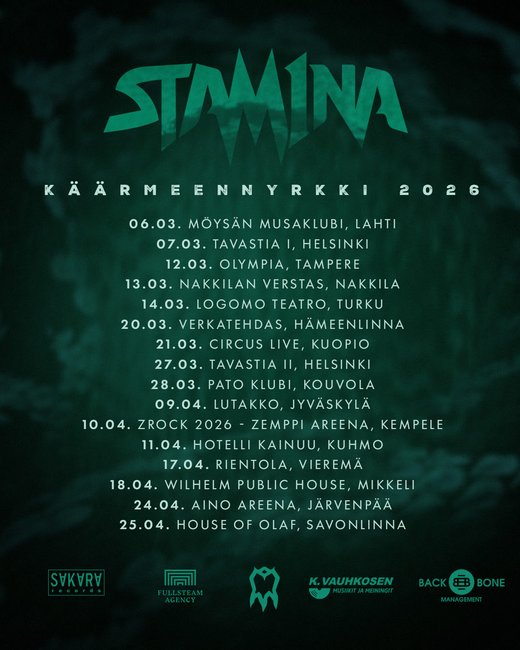 Stam1na starttaa uuden albuminsa tiimoilta "Käärmeennyrkki 2026" -kiertueen 6. maaliskuuta 2026.