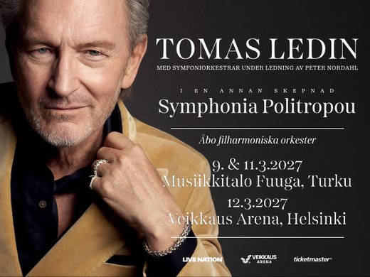 Ruotsalainen supertähti Tomas Ledin palaa Suomeen sinfonisen "Symphonia Politropou" -projektinsa kanssa maaliskuussa 2027.