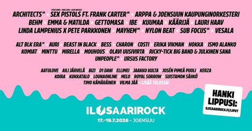 Joensuun Ilosaarirockin ohjelmistoon on lisätty 18 uutta nimeä.