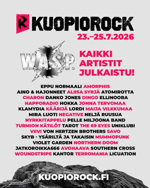Kuopiorock kokoaa 23.-25.7.2026 Väinölänniemeen laajan ja monipuolisen rockjuhlan, jonka pääesiintyjäksi on kiinnitetty yhdysvaltalainen heavy metal -legenda W.A.S.P. Kuopiossa nähdään myös Eppu Normaalin jäähyväiskeikka, Amorphis, Danko Jones, Negative, Dingo, The 69 Eyes, Käärijä, Ellinoora, Klamydia, Maija Vilkkumaa, Uniklubi, Neljä Ruusua, Turmion Kätilöt ja lukuisat muut.