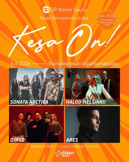 Kesä On! -suurkonsertti avaa pohjoisen kesäkauden 6. kesäkuuta, Kemin Mansikkanokalla.