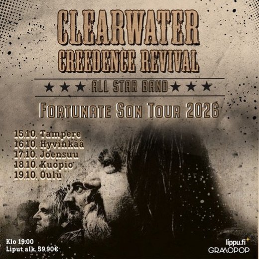 Neljällä vuosikymmenellä ympäri maailmaa keikkaillut CCR-coverbändi Clearwater Creedence Revival saapuu lokakuussa Suomeen osana "Fortunate Son" -kiertuettaan.