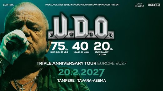 Saksan ja Euroopan hevikeisari, Accept-legenda Udo Dirkschneider juhlii ensi vuonna triplaa: mestari itse saavuttaa 75-vuoden rajapyykin, U.D.O. -yhtye täyttää 40-vuotta ja U.D.O:n kahdeskymmenes studioalbumi näkee päivänvalon. Tämän kaiken kunniaksi U.D.O. suuntaa Triple Anniversary -kiertueelle, joka saadaan Suomeen Tampereen Tavara-asemalle 20. helmikuuta 2027.